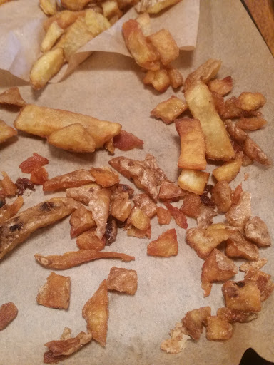 Les frites sont froides, le burger est froid, aucune sauce (les gars vous ĂȘtes des pinces sĂ©rieux...). Du coup, on se retrouve Ă rĂ©chauffer le tout au micro ondes comme un vulgaire MacDo...