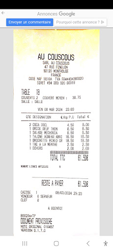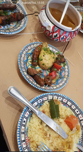 Read moreCadre agréable nous étions 7 convives le cadre est agréable cependant les tables nappées mais avec un set de papier et serviettes papiers, sont trop exiguëes pour apprécier un plat sur ces tables de bistrots ! En tant que 5 adultes avec 2 enfants le coucous était plat sans aucun goût aucune tomate le bouillon était un brouet blanc aucune épice de type harztoune pas de concentré de tomate pas de poivre ! Pour ce qui est de la viande les brochettes d'agneaux sont des mises en bouche qui devraient être proposées en apéritif tant petites sont elle! Pour les merguez piètres qualité elle sont industrielles avec boyau plastique et chaire, insipide pour la viande kefta aucun goût on ne ressent même pas le goût hallal !