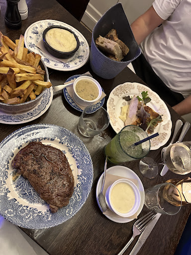 Nourriture : 5/5 Nous avons commandĂ© la Voile avec sauce aux champignons et lâEntrecĂŽte avec sauce au bleu. Les deux plats Ă©taient accompagnĂ©s de purĂ©e de pommes de terre, mais jâai demandĂ© des frites avec lâentrecĂŽte, et elles Ă©taient parfaites ! Les portions Ă©taient gĂ©nĂ©reuses, ce qui nous a surpris, et les saveurs Ă©taient excellentes. La sauce aux champignons Ă©tait riche et la sauce au bleu, juste assez indulgente.