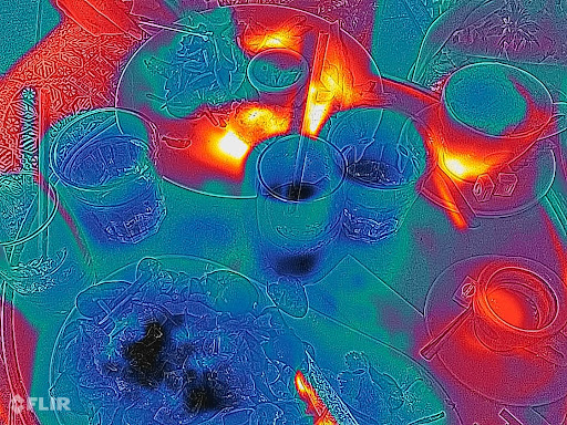 Il arrive à notre table et lorsqu'il pose mes couverts et ma serviette dans les cendres sur la table, j'ai dû l'arrêter et lui demander d'essuyer un petit peu "si ça ne vous derange pas", puisque visiblement, il avait la flemme.