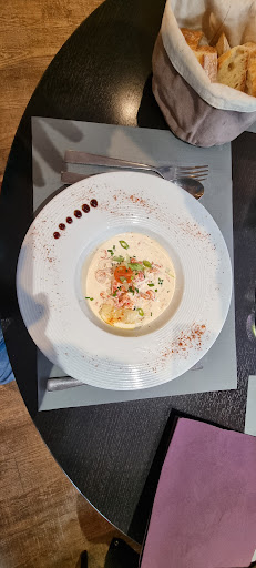 Read moreUn très bel endroit et ou venir déjeuner ou diner, nous y sommes allés hier soir (un mardi) avec ma femme et nous y retournerons avec plaisir entre amis ! Un accueil agréable, souriant et discret. De belles tables fleuries, un décors chaleureux et distingué; une grande ardoise avec des noms de plats plus alléchants les uns que les autres: nous avons décidé de nous mesurer au menu entrée, plat, dessert après avoir dégusté un petit apéritif. En entrée, un oeuf cocotte avec une sauce aux morilles, en plat un travers de porc caramélisé et purée de patate douce qui s'est illustré par sa cuisson parfaite. Un pot au feu qui a eu l'air de ravir ma femme étant donné qu'il ne restait plus grand chose dans l'assiette (ma femme adorée est assez exigeante en matière de cuisine :D ) pour finir nous avions tellement bien mangé que nous avons terminé sur le partage d'un petit fondant au chocolat très bien réalisé (et très bien dévoré !) nous avons fini le très bon vin (en carafe) et conclus par un café. Tout ça pour un prix treeeees raisonnable. Vraiment je recommande chaudement cet établissement: une belle découverte, tout à fait inattendue car le restaurant vient à...
