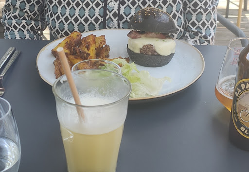 Assez déçu de ce restaurant dans sa globalitĂ©. Les aliments des plats proposĂ©s sont plutĂŽt qualitatifs mais la quantitĂ© est bien triste. Pour avoir pris le burger, je me retrouve avec un steak, une tranche de fromage et 3 fines rondelles de concombres. La taille nâest pas non plus trĂšs consĂ©quente. En accompagnement une quinzaine de frites qui se battent en duel (Un peu de salade en plus aurait Ă©tĂ© fort apprĂ©ciable !!). Ce qui est encore une fois dommage car câest plutĂŽt bon ! (Je passe les commentaires sur le dessert, trop chers pour ce que câestâŠ). Peut-ĂȘtre est-ce dĂ» au changement de propriĂ©taire rĂ©cent ? De plus, Ă notre arrivĂ©e nous avons eu la bonne/mauvaise surprise de trouver une scĂšne qui Ă©tait en train de sâinstaller. Au cours du repas une animation karaokĂ© assourdissante qui se lance donnant ainsi la fin Ă notre repas. Bref, Ă ...