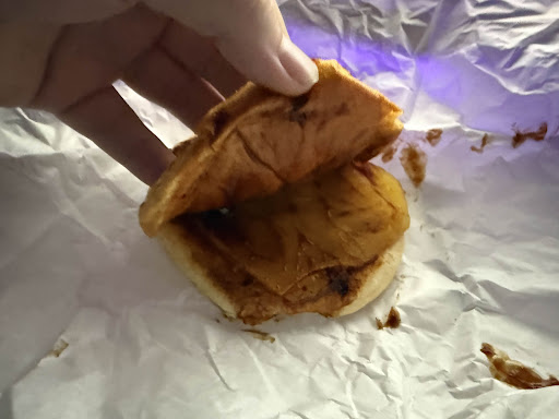J’ai pris un pain buns à la base et j’ai eu un pain « maison » rassis depuis plusieurs jours donc immangeable et en plus cramé.
