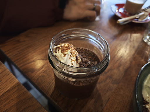 The chocolate mousse though. It's clearly dark chocolate and there's a very pleasant lightness to it, but it's still satisfying. Good stuff. This is what made it 4 stars for me, otherwise it's...