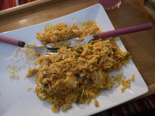 Wow, ce poulet korma, ses odeurs, la sauce écrémée, d’amande et d’épices, qui se mariaient avec la musique traditionnelle tournant durant le repas.