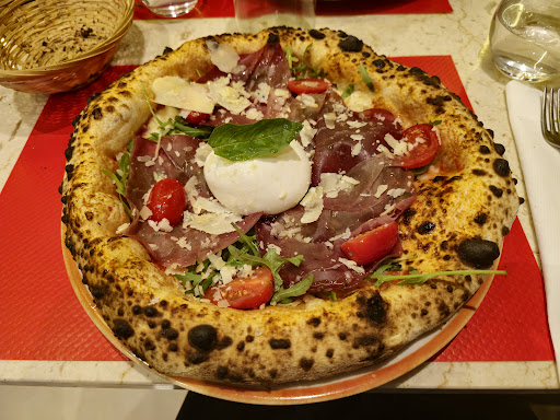 Le clou de la soirĂ©e fut sans conteste leur pizza BRESAOLA, une symphonie de saveurs parfaitement harmonieuses. La pĂąte, fine et lĂ©gĂšrement croustillante, sert de toile Ă une palette dâingrĂ©dients d'une qualitĂ© irrĂ©prochable : tomates pelĂ©es, mozzarella fior di latte, roquette, tomates cerises, burrata crĂ©meuse, copeaux de grana padano, fines tranches de bresaola, et pour couronner le tout, un filet dâhuile dâolive extra vierge sublimĂ© par quelques feuilles de basilic frais. Chaque bouchĂ©e est un voyage, un hommage Ă la simplicitĂ© et au raffinement de la cuisine italienne.