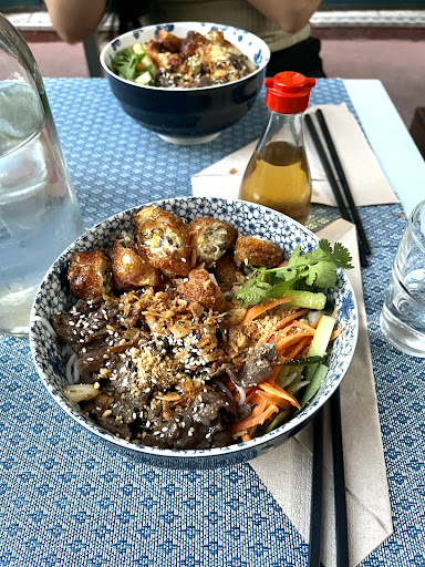 Read moreHier soir encore, nous nous sommes régalés chez Tô & Cie ! Nous avions des invités et nous avons commandé un assortiment de plats à emporter : raviolis vietnamiens, salade de mangue et crevettes, Tô Bo bun, Pho Bœuf, dessert maison à la crème de coco et mangue confite… Tous ces plats sont réalisés par Phuong à la main, cuisine familiale élaborée avec des produits sains et frais. Les saveurs, les arômes, les couleurs…. J’ai pris soin de présenter ces plats dans de jolis bols et plateaux asiatiques. Un plaisir pour les yeux. Un régal pour les papilles ! Je ne peux que vous recommander cette délicieuse “cantine vietnamienne” comme l’appelle sa créatrice. Pour ma part je dirais dirais plutôt “la table de Phuong” qui nous ravit avec des plats parfumés et délicats, les plats de son enfance. Aux beaux jours, vous pouvez déjeuner/dîner en terrasse ! Hier soir, nos convives étaient à la fois agréablement surpris et comblés. Et, nous ravis de ce moment de douceur...