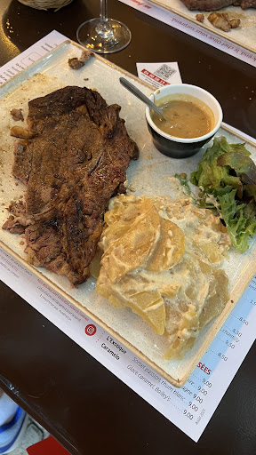 Je suis venue et revenue ici tellement de fois que je ne saurais les compter. Je suis, à chaque fois, heureuse de revoir le staff, toujours aussi sympa, drôle et bienveillant! C'est cette "good vibe" qui me ramène souvent ici, bien plus qu'ailleurs! La cuisine est bonne, oh oui, bien bonne, croyez-moi, pour qui aime la viande en intraveineuse! Une suggestion: la côte de veau sauce aux cèpes: ouh la la! Mais quelle est la saveur d'un repas, s'il n'est pas servi de façon conviviale ?! Pour ma part, qu' importe mes visites, je n'ai rien à redire de quoi que ce soit ! Gratuité? Jalousie? Je ne comprends pas certains commentaires: dans un restaurant, ce qui est proposé c'est une prestation de services ! On cuisine pour vous, on vous sert ! Les prix sont affichés à l'entrée, si vous êtes incommodés par la note il faut lire le menu avant de passer la porte ! De mauvaises notes inutiles, parce que la personne qui est venue en visite n'a pas su prendre sa responsabilité vis à vis de sa propre bourse et faire 2 minutes de lecture. Temps qui a du lui servir pour laisser un commentaire salée ! À chacun son hobbie ! Ici on sert de la viande et de qualité, du bon vin, un bon repas pour celui qui sait apprécier le parti pris de la maison: la bidoche! Je dis juste ça ! MOI, je reviendrai pour le tout !...