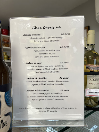 Read moreCame across Chez Christine while wandering around Saignon. Picture perfect cafe with a beautiful outlook, and limited menu. We debated whether we wanted to spend €17 on omelette and salad or hot cheese salad but the view and location was so pretty. All of the dishes cost the same and service was laid back so don’t expect to eat quickly and run….however it was busy and the food was good. It is pure Provence cafe culture at its best - simple, tasty and slow. There was no rushing us to get us out of the table and the salad was a lovely hot cheese melted over crispy bread, with pine nuts, tomatoes, tapanade croutons and a herby dressing. All very nice. £7,50 for a litre of water seemed steep but you don’t mind paying when the atmosphere is so good that you can while away an hour or...