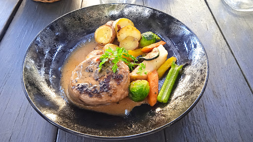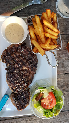 On était 16, sans doute trop pour ce restaurant qui a pourtant accepté la réservation. Le service était plus que lent et incapable de prendre la commande des apéritifs. Il en manquait. Sur proposition, on a accepté de laisser manger tous les enfants d'abord puis ensuite les adultes. Les premiers adultes servis avaient finis depuis belle lurette quand, enfin, les derniers étaient servis. J'ai un peu fait la gueule en regardant mon assiette (photo avant de commencer à manger) après avoir vu les énormes assiettes servis aux autres convives. J'avais deux pommes de terres qui se battaient en duel. Ils ont du oublier l'accompagnement de la selle d'agneau. Ma femme attend encore le verre de vin blanc demandé à deux reprises pour accompagner son poisson. Pour être bien servi, il faut visiblement commander un burger. Ceux qui ont fait ce choix étaient enchantés ... mais je ne vais pas au restaurant pour un burger. Allez-y en couple, mangez un burger ... vous devrier...