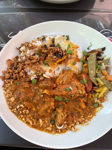 Petit restaurant qui au passage ne paye pas de mine mais en faite dès que l'on s'installe on découvre que le personnel est sympa tout de suite prêt à satisfaire sa clientèle, on nous a installé rapidement une table en terrasse parce qu'il n'y en avait plus de disponible. On est surpris quand on découvre les plats qui ont un petit côté reunionais . L'agneau au curry est un régal et en plus copieux pour un prix très raisonnable . De passage nous ne manquerons pas de nous arrêter à nouveaux à l'occasion. Ne pas hésiter à s'y arrêter de plus si vous pensez l'avoir passé faites comme nous il y a le rond point qui vous permet de refaire le tour...