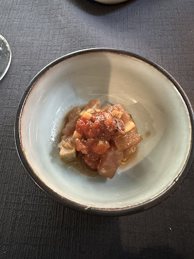 Read moreThis is a delightful little restaurant tucked away on one of the many picturesque and narrow little streets found in Old Cavaillon. My wife and I ordered the daily lunch special for a very reasonable 16 Euros which included slow cooked boneless pork ribs with a side of polenta and zucchini. The pork was exceptionally tender and was accompanied by a brown sauce which I am sure was made with the pan drippings and was also very delicious. My wife enjoyed her aperitif de la maison and I the house rose wine which were excellent. The included dessert was a deconstructed tarte tatin with salted caramel ice cream which was very creative and tasty. For the price which included the plat and dessert we felt it was very reasonable especially for the quality of food and service found at this wonderful restaurant. We will be returning and suggest you consider this fine...