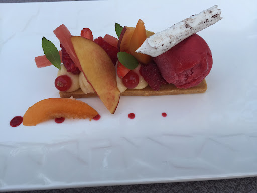 Read moreLe Cadre et le personnel souriant ont réussi à me faire mettre 2 étoiles. Car malheureusement de l'entrée au dessert cela n'a été que déception. Ceci est biensur un avis personnel et chacun a ses propres goûts biensur. Pour mon fils de 2 ans un steak haché trop cuit et des pâtes possiblement réchauffées au micro ondes. En entrée mi cuit de foie gras avec son chutney d'ananas manque de goût. Puis grosse déception sur le plat principal le fameux filet de bœuf fumé au bois de hêtre qui était tellement cuit qu'il en était immangeable d'ailleurs merci au patron de ne pas nous l'avoir fait payer. En accompagnement purée de légumes mais on ne sait pas lesquels et risotto qui n'était pas mauvais. Mon mari a commandé un gâteau d'anniversaire pour mon fils et moi mais encore une fois grosse déception car le gâteau est arrivé tellement congelé qu'on a du repartir à la maison avec et le mettre dans un tuperware donné par le resto . Le vin lui était bon . Bref je trouve que le cuisiner se complique bien trop l'existence à innové des goûts pour des produits qui sont si bon de base et sans artifices. N'oublions pas que nous avons des produits français si savoureux alors ne les denaturons pas trop car sinon voilà...