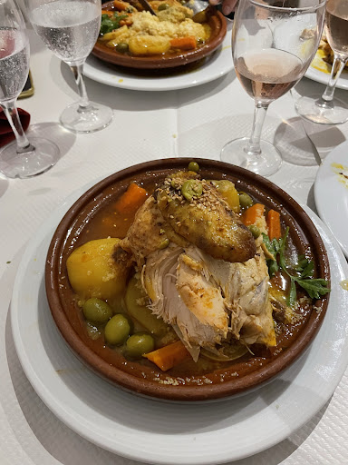 After our selections, the food came and was everything we could have asked for. The couscous and the sauces were offered in a communal serving bowls and the meats served individually for each person. The food was absolutely delicious. We decided on a chilled Rose, which went perfectly with our choices. To close it off, we chose ice desserts from the separate dessert menu, and it did not disappoint...from a Grand Marnier Souffle to a Frozen Nougat, it was a perfect ending after the Fig Liqueurs.