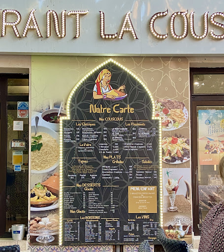 Read moreNous avons dîné à la Couscoussiere lors d'un évènement proposé par la ville. Nous avions choisi ce restaurant car bien noté et idéalement placé pour assister à l'évènement. Un menu unique est proposé, sans distinction pour les enfants. Nous souhaitons en apéro un Orangina, et d'autres sodas. On nous porte un gobelet en carton de même pas 25cl rempli de glaçons, qu'on nous facture 3€50! Autant qu'un véritable apéritif. Lorsque je me suis rendue aux toilettes, je m'aperçois que notre verre à 3€50 provient de bouteilles de 1,5l à l'arrière du restaurant. Sachant que les toilettes se trouvent tout au bout du restaurant, il aurait été judicieux de prendre le temps de nettoyer correctement le restaurant qui était vraiment sale, au sol mais pas seulement (saleté qui semblait provenir d'un mauvais/absence de nettoyage et non pas du passage qui a pu être régulier ce soir-là pour se rendre aux toilettes). Le repas est bon et copieux mais c'est chacun sa boulette. 4 viandes et 1 unité de viande pour chaque personne. Étant donné le repas copieux, au moment de passer en caisse, je demande s'il est possible d'avoir un contenant pour emporter le reste du repas et éviter du gaspillage. On m'indique que le restaurant ne dispose pas de ce qu'il faut... (alors que ce même restaurant propose de la vente à emporter). Passage en caisse, nous assistons à une esclandre entre un Client et le responsable qui le remercie d'un "casse-toi!" La note est évidemment trop salée pour les prestations + que moyennes. Je ne...