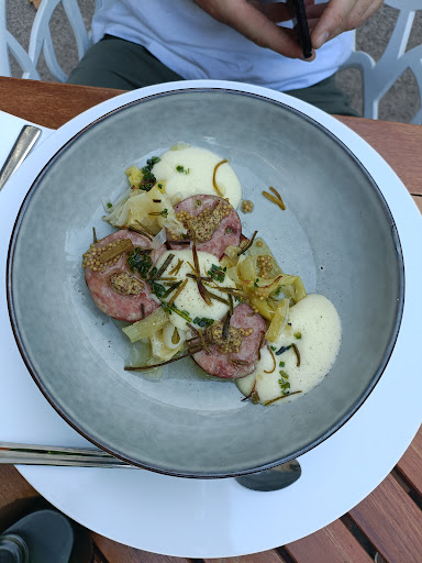 Avis subjectif : Entrée 1 saucisse de Morteau délicieuse, simple et efficace ; entrée 2 pastèque et chair de crabe, bon et frais mais on trouvait qu'il manquait un petit pep's. Plat 1 tartare de bœuf, bon mais un peu lourd/ écœurant (crevettes crues) sur la fin ; plat 2 pluma de porc, impeccable ! Dessert 1 figues rôties, vraiment top entre chaud/froid, texture, goût ! Dessert 2 tatin pêche, délicieux bien que j'y aurais apporté un peu de fraîcheur. Pour nos jeunes, plats enfants avec du poulet cuit en basse température qui fondait en bouche. Excellent. Et en dessert, la...