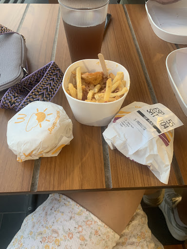 L'accueil est déplorable, après 30 min d'attente, la serveuse arrive avec notre commande, alléluia ! Non car elle renverse complètement ma boisson sur mes frites et mon burger, c'est pas grave l'erreur est humaine sauf que... Ils ont refusé de me les remplacer malgré ma réclamation (j'ai demandé gentiment et poliment, je préfère préciser que je ne suis pas une Karen), j'ai pu aller me faire cuire un œuf. Inadmissible car ce n'était pas mon erreur. Ils ont juste re rempli ma boisson.