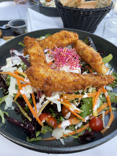 The prices do reflect the location (fair enough). Having had oysters from one of the many oyster cabins in Gujan-Mestras, we didn’t feel we where going to improve on them and they were double the price so we decided to try a Caesar salad - what a strange affair - breaded chicken goujons on top of piles of salad with a mixture of leaves, grated carrots, tomatoes and grated Parmesan, and very little dressing. It was an OK salad (could have done with more dressing), but it definitely was not a ‘true’ uncomplicated...