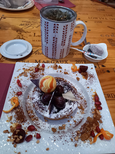 Ma 1e visite était pour prendre un thé (très large choix) accompagné d'une excellente pâtisserie. J'ai pris une tarte au chocolat et aux grillotes.