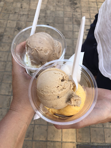 Tout incroyablement savoureux, chunky à souhait avec des gros bouts de garniture. La glace au nougat noir est une tuerie. Le service est rapide et aimable (on m’a proposé de goûter en hésitant entre deux types de parfums au nougat). Les prix sont inférieurs à la moyenne locale et les cornets maison sont délicieux.