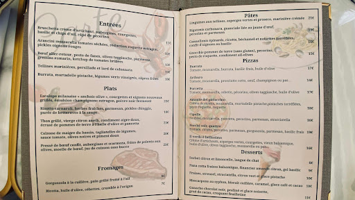 Read moreNous y avons dîné comme tout le monde dans le coin pour connaître ce nouvel endroit. La déco est un mix de Gifi / Action avec du lierre en plastique, des cadres en vrac, des petits miroirs tous identiques et sans idée, des plumets évidemment et des babioles en guirlande d'origine Aliexpress... Mais bon, l'ensemble trompe assez l'oeil pour faire un peu coquet et les chemises citronnées des serveurs sont mimi. Pour les plats; la pizza 4 fromages est insipide et quasi sans fromage, les autres idem sans saveur, l'escalope milanaise hors de prix pour une semelle accompagnée d'une cuillère à café de tapenade, nous tentons donc l'huile piquante pour exciter les papilles mais c'est juste de l'huile... La table à côté de la notre à la vue de ses spaghettis livides a du demander de la sauce pour pouvoir avaler...Bref ça lésine sur chaque ingrédient et les plats sont tous au rabais, on sent qu'il faut marger au max. Gigi pour les pigeons, Il fallait aller...