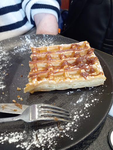 Nous commandons ensuite une brioche perdue sans caramel, en demandant à le remplacer par du Nutella. Elle nous est pourtant apportée nappée de caramel. Après rectification, la brioche nous est bien servie avec du Nutella, mais cette fois-ci sans cuillère…