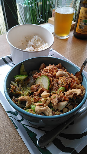 What a delightful little poke bowl outlet! We were pleasantly surprised and will definitely go back. The food was fresh and tasty. It was fairly easy to order and pay with the self service machines (though as a first time guest it would have been great to have someone to discuss the menu with). The portion sizes are generous and there are lots of options to choose from. The guys were busy making food for customers, there seemed to be a lot of take out orders being made and we were the only ones eating in at the time we visited (hence the lower score on ambience). Overall we loved it and look forward to trying more of the menu. I would recommend this to anyone looking for a fresh, healthy and filling meal that tickles...