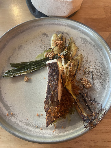 La cuisine est moderne avec de belles associations, les cuissons sont respectées. Nous avons passé un trÚs bon moment gastronomique pour un prix raisonnable de 49 ⏠menu dégustation 5 plats.