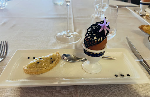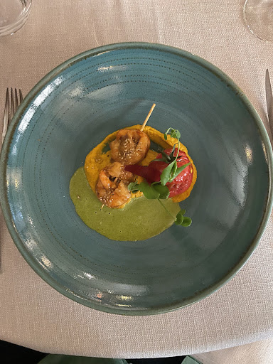 Read moreErschreckend: Waren 3 Minuten vor Reservierung im Lokal und wurden für 5 Minuten nach draußen gebeten. Sind dann, um sicher zu gehen, lieber 12.10 Uhr, statt 12.00 Uhr, im Lokal erschienen und wurden, vermutlich weil wir ein Hund dabei hatten, mit direktem, frontalem Blick auf die Toilette positioniert worden…Erste Überraschung im internationalen Ferienort: Es wird in diesem Lokal kein(!!) Englisch gesprochen, bis auf eine sehr freundliche junge Frau im Service, die sehr auf ausländische Gäste eingeht. Vielen Dank dafür, Sie waren ein Lichtblick!! Die andere männliche Servicekraft, wie die vermeintliche Patronin, könnten in ihrer distinguierten, unfreundlichen Art auch sofort in Paris arbeiten. Mussten bei der Servicekraft 10 Minuten auf eine erste Kontaktaufnahme warten, obwohl wir die einzigen Gäste im Lokal waren(!) und „durften“ nach unglaublichen 30 Minuten unsere Bestellung aufgeben. Das gewählte und teuerste Menü, das Hummer Menü, war in einigen Gängen sehr anregend mit interessanten Nuancen, leider wiederholten sich diese zunehmend in den folgenden Gängen. Gott sei Dank jedoch nicht der Koriander, welcher im zweiten Gericht „Boullon de homard tom kha gai, médaillon de homard“, alle interessanten thailändischen geschmacklichen Nuancen völlig verdeckte. Absolut „überraschend“ war der Hauptgang, in welchem Hummerteile eines halben bretonischen Hummers, noch in der Karkasse befindlich, mit Fischbesteck gegessen werden sollten, was in gehobener Gastronomie ein absolutes „No Go“ ist…Der Kampf „Mensch gegen Hummer“ konnte nur teilweise gewonnen werden. Letztendlich nur sehr bedingt zu empfehlen, wenn man gewillt ist, mindestens 300€ für ein Mittagessen auszugeben. Für uns ein einmaliges „Erlebnis“…wirklich nur bedingt...