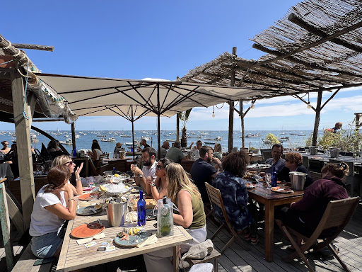 If ever there was a place to eat oysters, this is it. A stunningly beautiful location right on the edge of the bay where the oysters are from. The terrasse is casual but feels upmarket, the welcome is warm, the service friendly and efficiant. Add the incredibly high quality of the oysters, some stunningly delicious white wines and you have a heavenly experience. One of my favorite places in the world to sit in the warm...