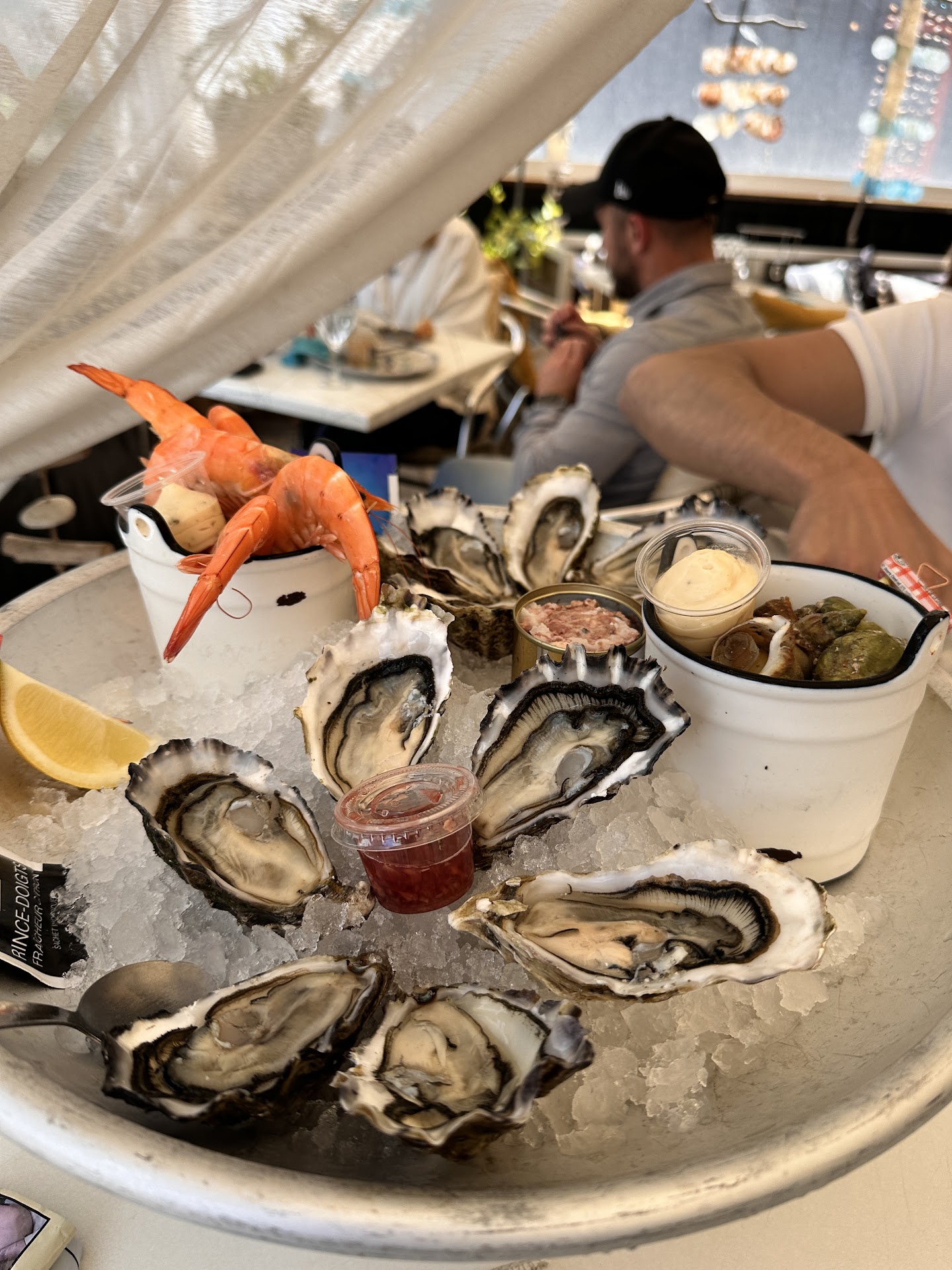 It’s near Arcachon, by the sea, and very easy to find with convenient parking. The menu is simple and to the point: oysters, shrimp, sea snails, wine, water, and pâté. Period. Not that I needed anything else. The staff was very friendly and the food delicious. A great stop on our way. I’d definitely recommend it and visit again.