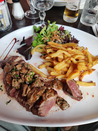 We’ve been going to this restaurant for many years and always liked it. Last night we went there with friends and assumed it would be good as usual. Staff were eagerly coaxing punters in when we walked by. We sat down without looking at the menu outside and we were alarmed to find no fish of the day. We had a vegetarian with us and she asked if she could have a pasta dish without the ham, requesting a tomato sauce of some kind. To our surprise his reply was that they can only do what’s on the menu. Our friend had a pizza margarita, which was the only vegetarian option!!! (Boring) We really should have left before we ordered food. My wife had Pavé de Salmon, and when she cut it, it was raw inside (definitely from the freezer). She had already eaten some of the end piece, but the waiter kindly changed it. Unfortunately, my wife spent the day suffering today and she’s convinced it was the fish. We won’t be going back and I think that’s sad, for a restaurant in a nice...