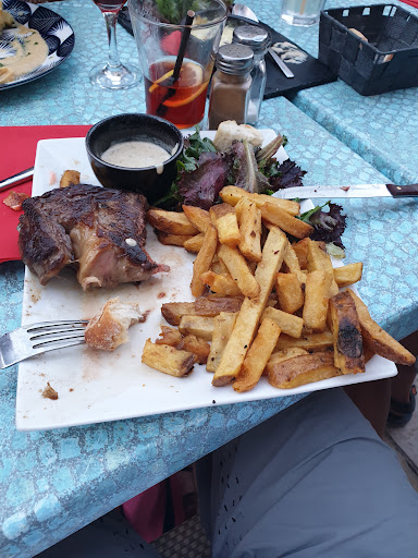 Lovely restaurant, highly reccomend. The owner added an extra table for us outside, as we were distanced from the other diners it felt like private dining! My children ate the (adults) burger. It was honestly one of the best burgers I have ever tried. Slightly too much for a child tbh, but Dad did not mind! Be warned the burger contains blue cheese! Our daughter liked it, but our son scraped it off. We should have read the menu more closely. I had the steak which was excellent, I went for a medium, but I think I should have gone for medium rare - its always hard to know in france as they like food more bloody than us! But it was nicely seasoned and good quality beef. The chips were excellent. The owner was very friendly, and spoke decent enough english. We got bitten, wear repellent. Nice wine and cocktaills, and I had a good cognac served...