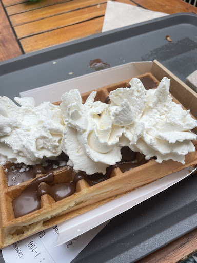 Read moreNous sommes Vénus pour honorer un pari et manger la traditionnelle gaufre de l'été. Il venait de faire un très gros orage et il pleuvait beaucoup encore. La responsable était entrain de fermer et avait déjà éteins ses appareils a gaufres. Elle les a rallumé et nous avons pu déguster au bar chacun notre gaufre, Nutella, Nutella chantilly, et banane caramel. A la fin, mon fils a demandé un verre d'eau, nous en avons eu un chacun alors que toute l'équipe se demenait a fermer. Un bon sens...
