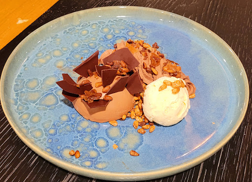 Read moreRead moreNous avons diner avec des amis au restaurant de l'hôtel. Le repas s'est bien déroulé. Nous avons opté pour plat + dessert. Me concernant un suprême de pintade très bien présenté et très gouteux. J'attendais impatiemment l'arrivée du dessert -- Chocolat et agrumes. Pour le dessert je n'ai pas compris le concept. 12€pour une grande assiette sur laquelle sont disposés 3 petits bouts de chocolat avec 4 touches de poche à douille de crème d'agrumes - principalement du citron avec 2 quartiers de mandarines. Incompréhensible. J'ai même eu l'impression qu'il manquait quelque chose dans l'assiette. On termine sur une mauvaise impression. Pour le reste bel endroit. Service qui pourrait être un poil meilleur si l'ensemble des plats arrivent...