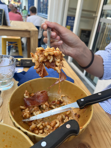 Maar dan het eten. Dat was gewoon slecht. Niet ‘mwah’ of ‘kan beter’, maar echt níet lekker. Het kreefthapje kwam uit een potje, de sardientjes werden rechtstreeks uit blik geserveerd. De pintxos van de dag: een stukje oud brood dat waarschijnlijk al uren klaarstond.