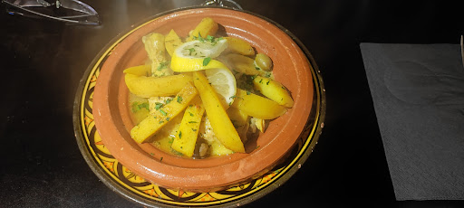 Premièrement, toutes les mesures concernant le covid-19 sont prises. Vous pouvez commander, emporter ou manger sur place tous les plats proposés. Salades, tajine, couscous. Les tarifs sont plus que raisonnables, allant jusqu'à 18 euros pour un couscous complet. Il y a même un couscous végétarien ! Nous avons été super bien accueillis, le personnel est très très sympa ! Le couscous, je connais bien et je peux vous dire qu'il est super bon ! La semoule fond dans la bouche, les viandes ne sont pas grasses ou huileuses. Tout est très bien cuit. L'ambiance est du style marocaine avec musique de fond typique. Pour ceux qui préfèrent manger léger, des salades sont aussi sur la carte. D'ailleurs, très bonne idée que la carte placée sous verre sur chaque table(très bien contre le coronavirus). Et enfin, le vin typique est à un bon prix ainsi que pour clore le repas et mon avis, les pâtisseries orientales sont délicieuses. Une bonne découverte que ce restaurant ! Possibilité de se faire livrer à domicile.