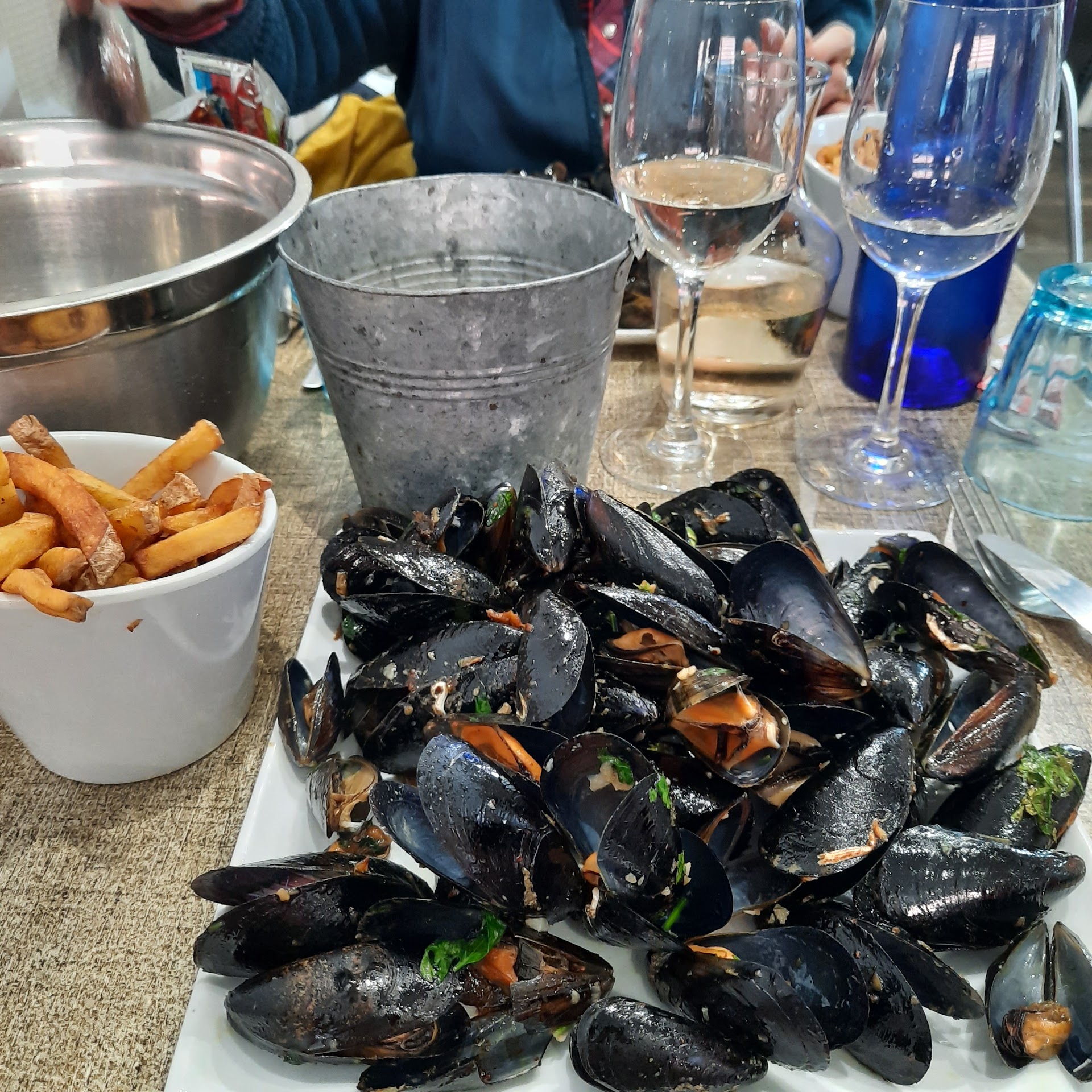 Si seulement câĂ©tait terminĂ©, non! Moules frites x3 arrivent. Plat froid . Du coup que faisait le mĂȘme serveur les bras croisĂ©s au lieu de nous servir!!!