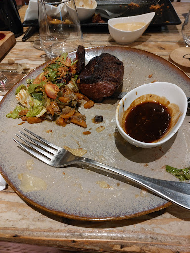 Enfin, pour continuer sur le chemin sinueux de la déception (nous n’étions plus à cela près), en guise de « dédommagement » l’établissement nous a proposé une tournée de shooters (que nous avons déclinée car nous étions véhiculés) ou une bouteille de vin offerte… Ce geste commercial a représenté une somme des plus modiques : moins de 5% de la facture totale de notre passage ici.