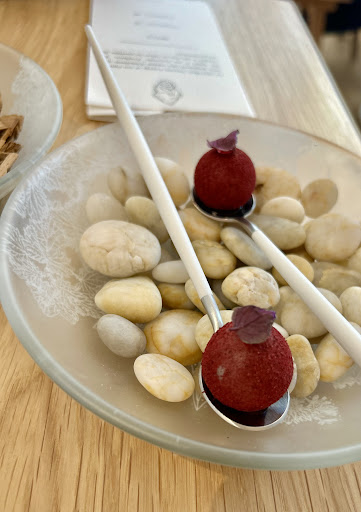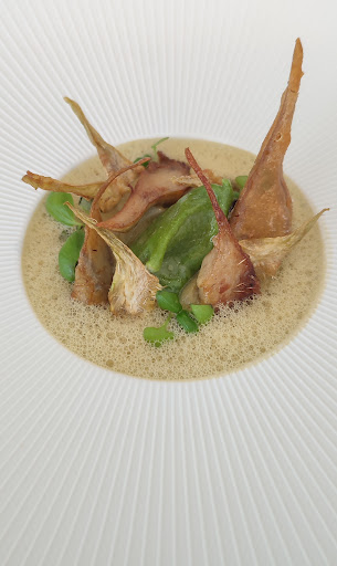 Read moreUn très bon moment et nos remerciements, car nous étions merveilleusement bien placés dans le « coin des amoureux » ☺️ Mention spéciale pour le bijou de tartelette au maigre fumé, l’extraordinaire araignée de mer, et la délicieuse raviole servie avec l’excellent travail de l’artichaut. Nous avons beaucoup apprécié l’ensemble du repas, et les surprenants amuses bouches aux saveurs éclatantes. Le plat le moins marquant pour nous était le cabillaud, moins extraordinaire et peut être moins raffiné que tout ce que vous nous avez présenté. Un mot aussi des présentations des plats, qui nous intéressaient beaucoup, mais dites un peu trop rapidement : nous aurions souhaité mieux les entendre, le son se perdait dans les résonances et nous n’avons pas pu tout comprendre.