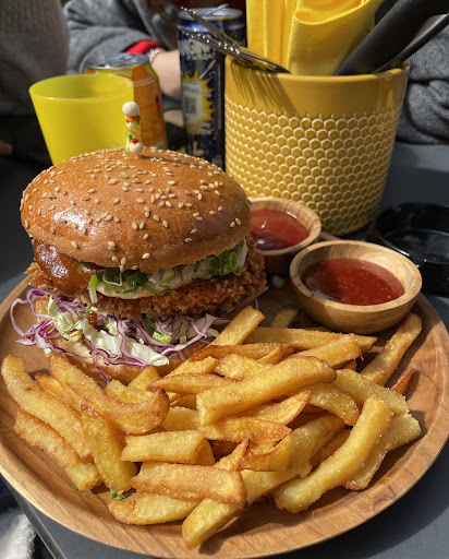 Read moreQuand on a trop traîné des claquettes à jouer aux touristes et que deux ogres de 4 et 10 ans ont faim, on s’arrête vite vite vite en voyant la lumière de la cuisine et on se dit : ces deux cheffes vont nous sauver le repas !!! Les ogres (et leurs parents) étaient ravis, rassasiés, refaits, réjouis. Bref, ne faites pas comme nous, n’attendez pas : allez-y viiiiite ! Puis, faites comme nous, retournez-y ;) C’était trop bon, « même que la dame elle nous a donné plein de ketchup et de mayonnaise ». Forcément c’est donc une dame très très bien ;) Burgers au top, salade copieuse… merci les filles, nous souhaitons une super saison à ces bosseuses qui vous accueillent...