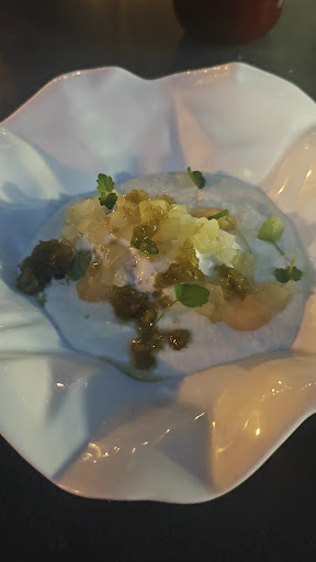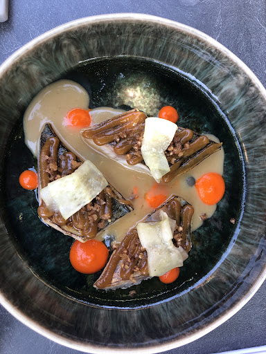 Read moreAan de hand van de Michelin Guide waren we erg benieuwd. Een paar van ons zijn vegetarisch, dus bij voorbaat checkte we of dit mogelijk was. Hier reageerde ze erg snel op en inderdaad er staat vega op het menu. We keken uit om uitgebreid te dineren maar helaas was het verrassing menu van 5 gangen alleen mogelijk als de hele tafel dat deed, iedereen wilde dit maar doordat er geen vega variant was, konden we dit niet proberen. Het leek alsof de taal barrière ervoor zorgde dat ze het vooral niet te moeilijk wilden maken. Uiteindelijk had iedereen en voor en hoofd. De voorgerechten smaakten prima en er was veel kleur op het bord. Bij het hoofdgerecht vond ik het varken vrij droog en de zwaardvis had ook korter gekund. De sausen en jux smaakte wel lekker. Wat jammer was, was dat ze niet vertelde wat er nou op ons bord lag. Voor de prijzen die je betaald zou je dit wel kunnen verwachten. Voor het toetje waren de kazen lekker maar niet bijzonder, verder bestond de rest vooral uit opgeklopte slagroom. Ondanks dat de borden mooi waren opgemaakt en de bediening hun best deed en vriendelijk was, miste ik in smaak en ervaring veel.