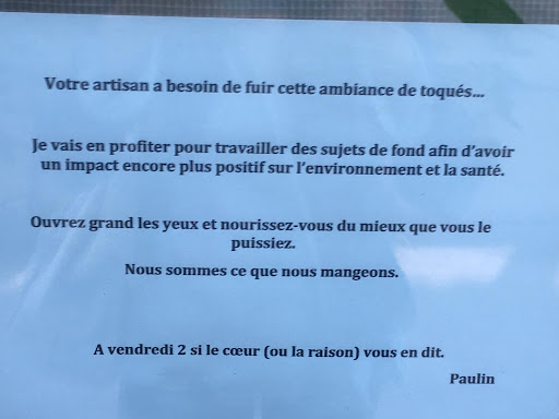 Read moreIf I could give 0 stars I would. Extremely rude. I arrived at 9:45 this morning (Wednesday). Staff was in the process of closing the window curtains right in front of me, with the shelves fully stocked for the opening this afternoon. I asked through the window if they were closed. He gave me the “je suis désolé” shrug. I made a pleading gesture. Another shrug and he locked the door. How arrogant! We are here for another 2 weeks and definitely will not revisit. The bread we got on Sunday wasn’t even that good. Far from a crusty artisan sourdough and a rather tough affair. According to their website they are supposed to be open until...