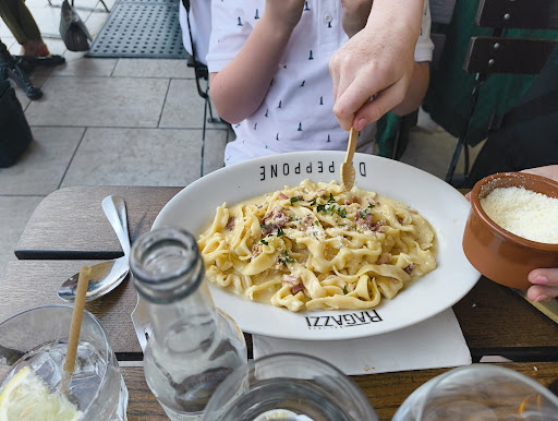 Beautiful food, lovely shared plate of crostini to start then kids shared a pizza and tagliatelle carbonara. Adults had the saltimbocca (star of the show) and steak. 4 empty plates. Zero complaints