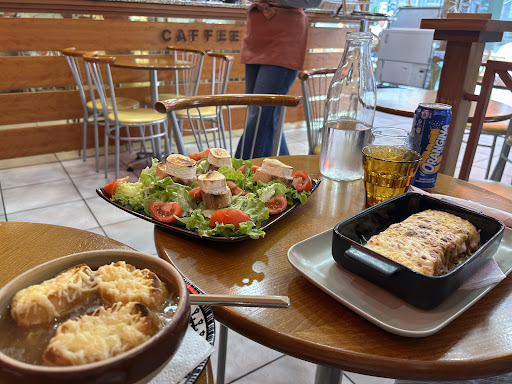 We had a first class lunch beginning with the best French onion soup we found in Lourdes! We shared a crisp, clean & healthy salad perfectly dressed. The baked goat cheese on toast atop the salad was a pleasant surprise! That was followed by entrees of Lasagna, Spaghetti Bolognese, and Croque Monsieur, all of which were savory & plentiful. Our meal was topped off by a shared banana split! Atmosphere was pleasant & welcoming and service was helpful and relaxed letting us eat slowly and enjoy a mid-day conversation and reflection of a wonderful visit to Lourdes. We wholeheartedly recommend seeking out this little...