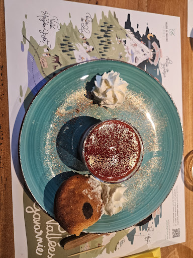 En tant que restaurant, il est géographiquement très bien placé. Ayant reservé à la derniere minute, il est facile d'accès depuis argeles gazost. Intérieur comme extérieur, tout est propre et entretenu. Face aux Pyrénées, le panorama est superbe. A l'intérieur, la grande cheminée, les poutres apparentes et les grandes tables épaisses donne à la salle un côté cozy et chaleureux. Nous y avons dégusté une brochette d'agneau toute tendre, très bien cuite (quasi devant nous car la cuisine est ouverte, il n'y a pas de cachotterie) et toute juteuses. L'accompagnement est original et haut en couleur dans le souci du détail dans le dressage qui fait plaisir a voir. La portion est correcte, voire généreuse pour certaine. Le tiramissu fruits rouges, tout comme la gourmande crème brûlée, est servi avec à côté, de la chantilly et un cookie fait maison également. À noter que le set de table est la carte des stations de ski et des villages environnants , pratique pour préparer de futures belles escapades au cours du repas. Le seul plus aurait été que la cheminée usse été allumée car il faisait juste bon. Je service y est plutôt rapide , compte tenu que le repas est fait à l'instant. Il est servi avec un large sourire et on se sent bien. La personne se préoccupe que tout se passe bien. Une très belle découverte que nous renouvellerons. Nous vous conseillons cette belle table pyrénéenne pour le cadre, la qualité des produits et leur dressage mais également pour les personnes qui ont à cœur de bien faire leur métier. Merci à vous de tenir aussi bien ce bel endroit. Bonne continuation, bon courage...