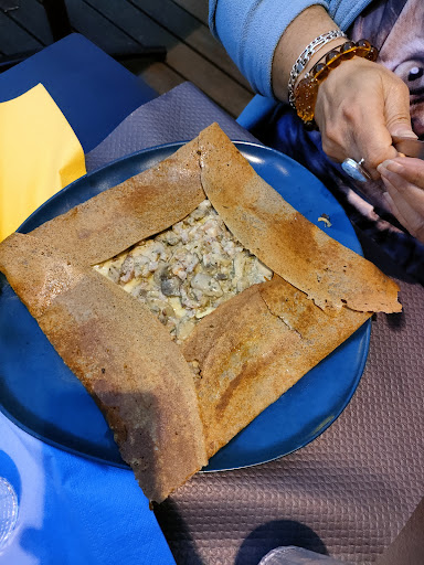 Crêperie bretonne qui ne fais plus de crêpe alors qu'on est venu exclusivement pour ça. Étonnant pour un resto breton et au vue de ce qu'on vois sur internet. Pas de poissons ou de plats de la mer comme on pourrai s'y attendre d'un resto breton à minima. C'est plus un bistro ou on trouve des repas classique. (steak haché, chips, omelette, etc...) pareil pour les desserts, pas de crêpes à l'horizons, attendez vous plutôt aux classiques tarte aux citrons, fondant chocolat, etc.... Pour moi qui ne mange pas de viande il y a juste une salade végétarienne. En ce qui concerne le temps d'attente c'etait long... Alors qu'on est arrivé en deuxième. Et en plus on a attendu plus longtemps que ses gens venu après nous. A une autre table j'ai même vu un couple partir à force d'attendre. Les ingrédients sont bon, l'assaisonnement aussi. Après j' ai été étonné quand j'ai soulevé ma boule de mozzarela et que j'ai vu qu'en fait elle était coupé en deux et que ce n'était qu'une demi boule. Ma sœur a pris un rumsteak. Mais à couper avec un couteau basique à bout rond. La serveuse était aimable par contre les tables étaient poussiéreuse et il y avais des grosses toiles d'araignée. Une fois nos plats terminé nous devons appeler la serveuse pour commander les desserts car sinon l'attente est trop longue. Ils ne font pas attention à l'état d'avancement des tables. Je ne sais pas pourquoi il y avais un chien qui restait sous notre table. On ne sais pas si il réclamait à manger ou quoi. Nous sommes arrivé à 12h20 et nous sommes sortie 13h50 alors que nous n'etions que 2...
