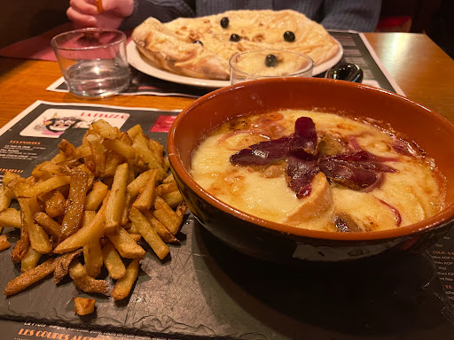 Read moreLe jour du marché, nous nous sommes assis sur un banc collé au restaurant. Là, un homme mettait en cuisson des pommes de terre dans un broche grillagée . C'était un énorme barbecue qui en fait est utilisée les jours de marché pour cuire les pièces de viande du pays des clients du restaurant Comme je suis cuisinier, j'ai abordé le monsieur et nous avons échangé sur notre pasdio de la cuisine. Du coup, ma femme et moi avons demandé si il restait de la place... Coup de chance pour une table en terrasse proche du méga barbecue. Merci les serveuses et serveurs très sympas 😁 J'ai pris de l'épaule d'agneau confite, accompagné frites maison et mini poivrons, etc. Ma femme une pièce de bœuf généreuse très bonne avec sa sauce et poivre. Je recommande chaudement ce restaurant. Pensez...