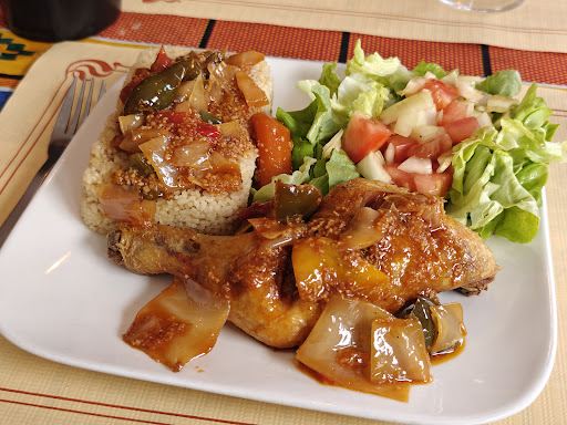 C'était vraiment désastreux, mais la cuisine reste assez bonne, pour ma part, j'ai mangé mieux ailleurs et il manquait un peu de Piment et d'accompagnement dans les assiettes et l'accompagnement (Alloco) servis après avoir finis nos plats avec la gentillesse d'un monsieur qui avait l'air débordé nous cris dessus et nous dit "mais il faut patienter un peu" 🤦🏻♀️