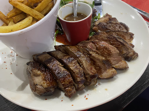 Read moreAu début, il a été un peu difficile de se comprendre en français et en espagnol, en raison de la charge de travail qu’il y avait à ce moment-là en terrasse, mais ils ont des notions d’espagnol, ce qui est très appréciable car je ne parle pas français, même si mon compagnon, lui, le parle. Nous étions deux personnes. Le hamburger était très bon et cuit à point. Il est servi avec des pommes de terre au lieu du pain (donc sans gluten, tout en gardant la forme d’un hamburger traditionnel), accompagné d’une salade et de frites maison. L’autre plat était une pièce de bœuf incroyable, de qualité, bien préparée et savoureuse, exactement comme je l’avais comandée. À boire, de l’eau, et le service a été excellent de la part du jeune homme et de la jeune femme. L’ambiance est chaleureuse et familiale. Nous reviendrons dès que possible pendant notre séjour à Lourdes. Le lendemain matin, nous avons pris un café et il était très bon. Et ce même soir, nous sommes revenus dîner et avons commandé un steak de veau avec une sauce aux champignons et un magret de canard avec une salade, et c'était vraiment délicieux. Le service a été bien meilleur ce deuxième soir : la serveuse était très chaleureuse et joyeuse, elle plaisantait et nous a même fait des câlins avant de nous dire au revoir, et le serveur aussi était très aimable et attentionné. Si nous revenons à Lourdes, nous reviendrons sans aucun doute manger et dîner ici, tout a été merveilleux. Un immense merci et salutations de...